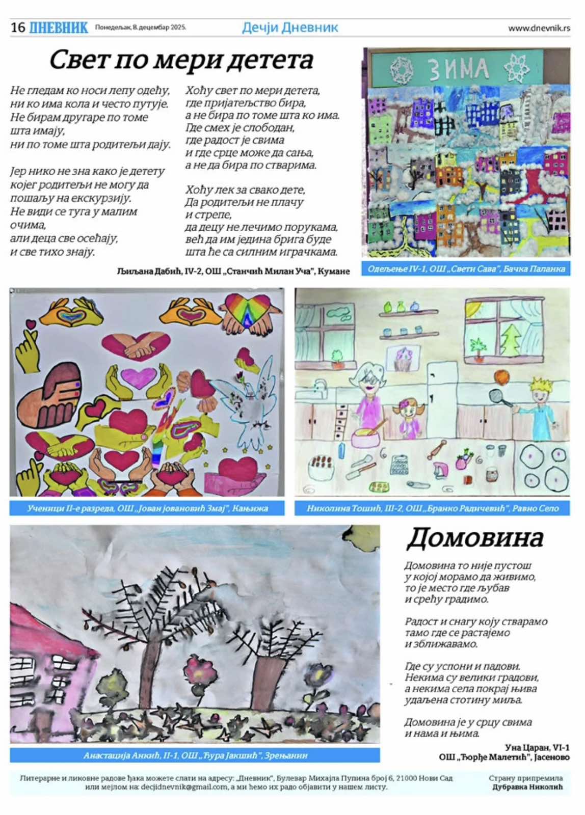 Песма Уне Царан објављена у листу Дневник