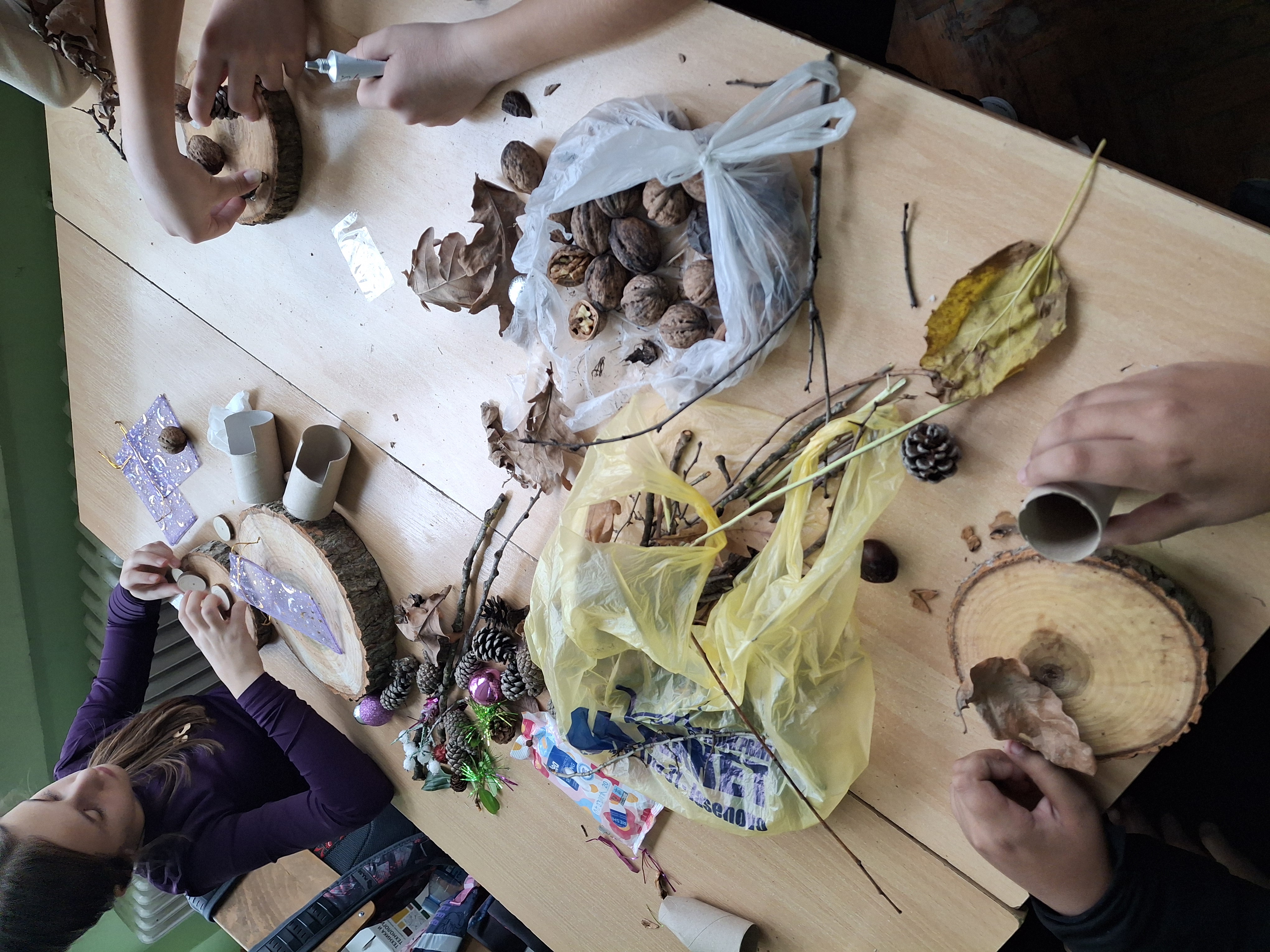 У сусрет предстојећим празницима, ученици виших разреда израђивали су на часовима технике и технологије аранжмане од природних материјала.