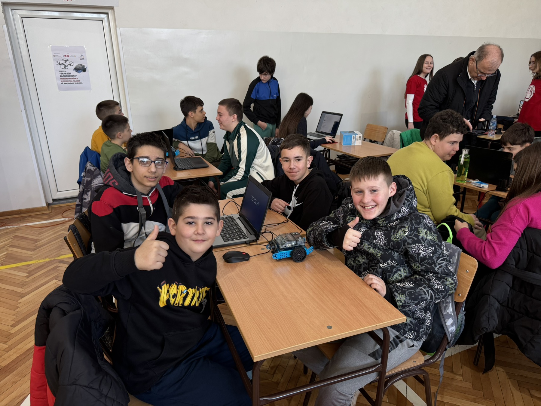 Ученици наше школе учествовали су на окружном такмичењу у програмирању и управљању дроновима и мБот роботима 2. Такмичење је одржано 28.фебруара у Основној школи ,,Олга Милошевић" у Смедеревској Паланци. Учествовало је 25 екипа са око 100 ученика из Смедерева, Смедеревске Паланке, Беле Цркве, Јасенова, Колара и Глибовца. Свим школама уручене су захвалнице за учешће на фестивалу ,,Знањем за будућност".